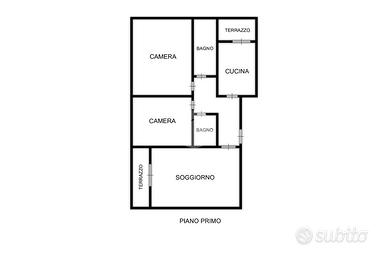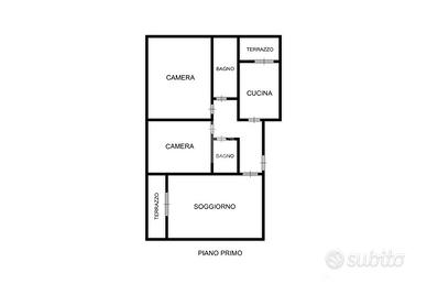 L'immobile, posto al piano primo, si apre su un'accogliente ingresso. La zona giorno di circa 40 mq è composta dal soggiorno e dalla cucina separata. Entrambi gli ambienti vengono serviti da un comodo terrazzo.
