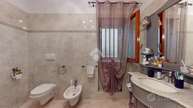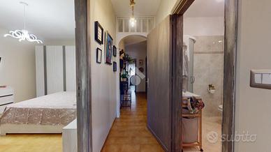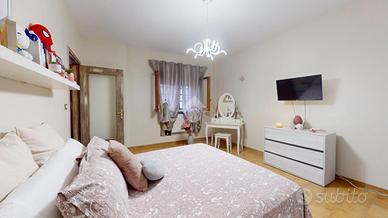 Sul lato sinistro del disimpegno si sviluppa la zona notte, con bagno finestrato completo di doccia e due camere da letto, ideali per garantire comfort e privacy alla famiglia.