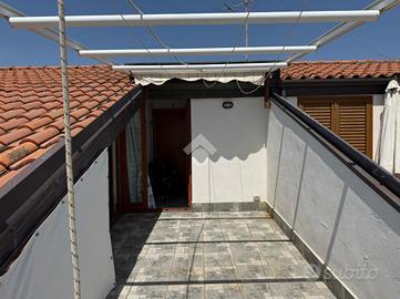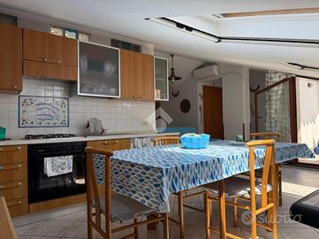L'appartamento: al terzo ed ultimo piano non ascensorato si tratta di una mansarda civile abitazione. L'ingresso su cucina-soggiorno, due le camere da letto, disimpegno, ripostiglio ed il bagno a completare gli spazi interni dell'immobile. Pecularietà dell'immobile il terrazzo a livello di mq 21 con balcone esposti ad Est, con vista sul mare di fronte. L'immobile si presenta luminoso ed arioso, grazie anche alle varie finestre a tetto in alluminio doppiovetro in tutti gli ambienti di casa. Le condizioni interne sono ottime, gli impianti originari, due i climatizzatori. Compreso nella vendita un box auto di mq 25 ca. Possibilità di acquistare anche il garage adiacente al prezzo di Euro 15.000,00.