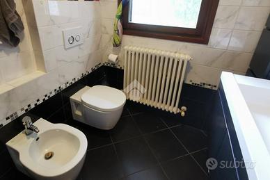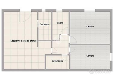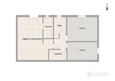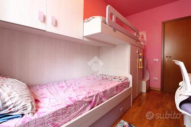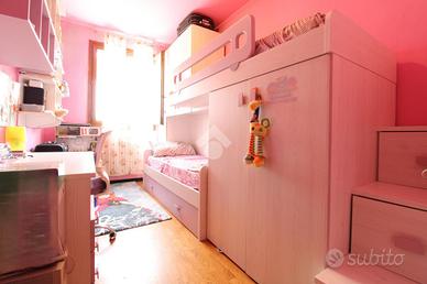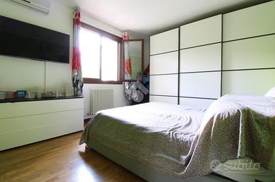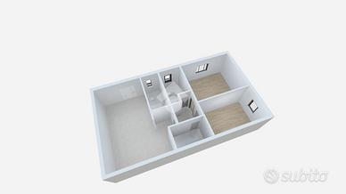 Il disimpegno collega la zona giorno agli altri ambienti: due camere da letto con parquet e bagno finestrato con doccia, oltre al ripostiglio-lavanderia.