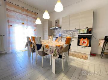 Nel particolare, l'appartamento presenta un ingresso che disimpegna la zona giorno composta da una cucina luminosa comunicante con il soggiono in un unico ambiente.