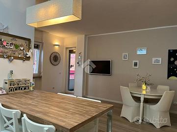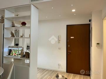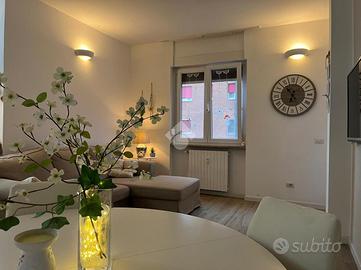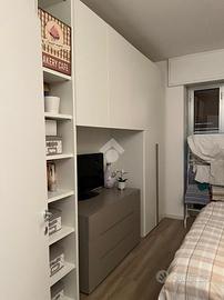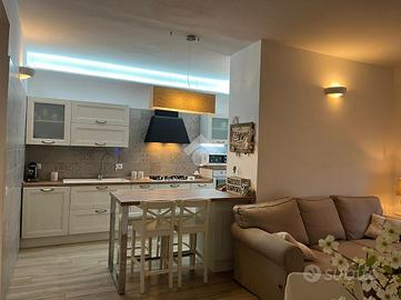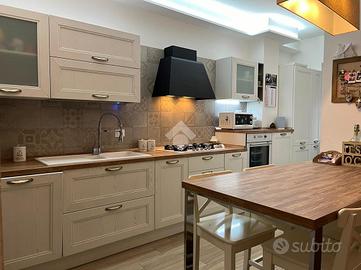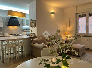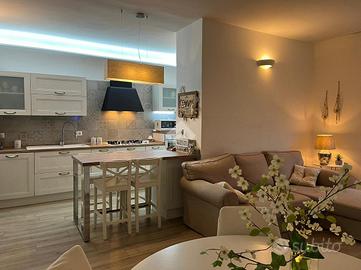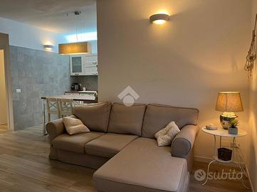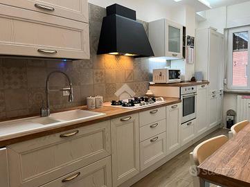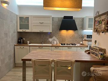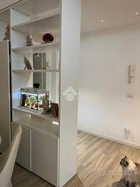 L'appartamento è composto da ingresso direttamente in soggiorno con accesso al balcone, da un'ampia cucina abitabile resa a vista e un bagno di servizio adibito a lavanderia.