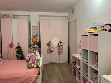 Alla zona notte si accede da un ampio disimpegno che offre una comoda armadiatura che funge da rispostiglio, due camere matrimoniali e un bagno finestrato con doccia.