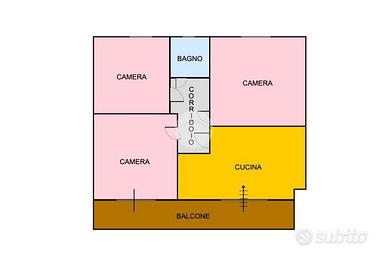 Alla soluzione si accede dalla cucina abitabile con Balcone e Finestra e dispone di 3 camere da letto e bagno con vasca.