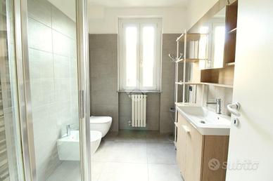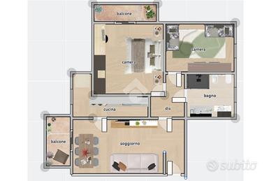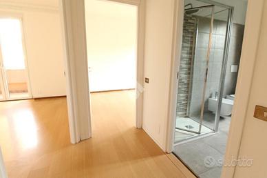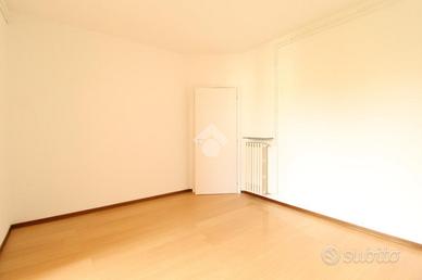 La soluzione di compone di ingresso con affaccio diretto sull'ampio soggiorno, cucinotto attualmente separato ma facilmente annettibile alla zona giorno, due camere da letto matrimoniali ed uno spazioso bagno finestrato con doccia. I due balconi donano piacevole sfogo sul bel giardino condominiale.
