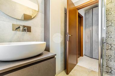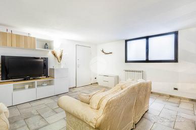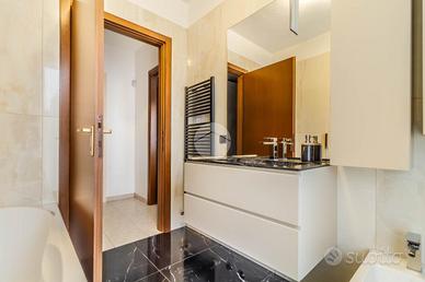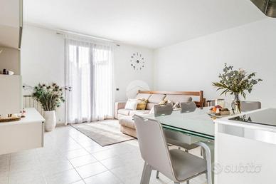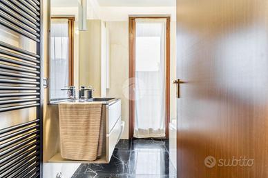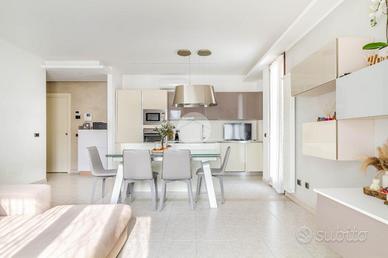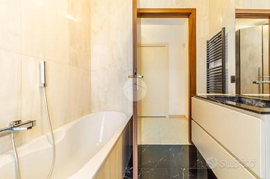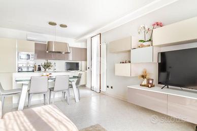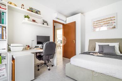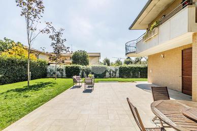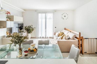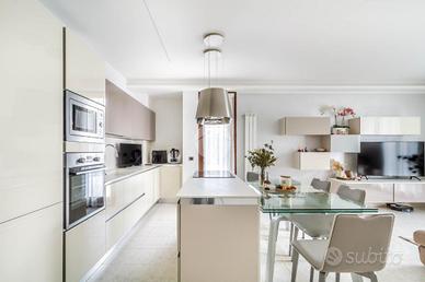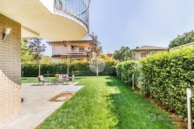 APPARTAMENTO CON TAVERNA, TERRAZZO ED AMPIO GIARDINO Varcando l'ingresso sarai subito conquistato dalla zona giorno open-space inondata dalla luce, grazie alle due porte finestre, che si aprono su un terrazzo spettacolare di circa 45 mq. Un vero e proprio salotto all'aperto dotato di pergola, perfetto per cene estive, momenti di relax o per passare direttamente al tuo giardino di circa 190 mq che abbraccia la casa su due lati. Il grande disimpegno, spazioso e versatile, può trasformarsi in una comodissima area guardaroba, accompagnandoti alla zona notte con due camere da letto accoglienti che si affacciano sul balcone e due bagni finestrati. Il valore aggiunto lo notiamo nella presenza della taverna con annessa la cantina attrezzata come lavanderia e direttamente collegata alla palazzina tramite portoncino blindato. Uno spazio versatile per dare vita a una sala hobby per coltivare le tue passioni, per serate con gli amici, o una calda sala da pranzo aggiuntiva per le grandi occasioni; l'accesso interno e diretto al box doppio garantisce massima sicurezza e comodità in ogni stagione. L'unità immobiliare si presenta in ottime condizioni manutentive essendo stata oggetto di una ristrutturazione circa cinque anni fa. Gli interventi di riqualificazione hanno riguardato: rifacimento degli impianti idraulico ed elettrico, sostituzione e rinnovo di pavimentazioni e rivestimenti dei bagni, nuova pavimentazione e installazione di due portoncini blindati nell'area destinata a taverna, l'impianto di allarme e di climatizzazione rimangono inclusi nel prezzo.
