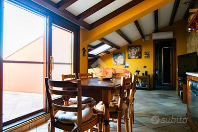 Salendo, si entra nella mansarda, trasformata in una vera e propria zona living con cucina/taverna: uno spazio ideale per pranzi, cene e momenti di relax in compagnia. Qui il protagonista assoluto è il grande terrazzo panoramico, perfetto per vivere l'esterno tutto l'anno, godendo del sole. Completa il piano il secondo bagno.