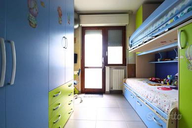 L'appartamento è composto da un accogliente soggiorno che dialoga armoniosamente con l'angolo cottura, pensato per ospitare pranzi e cene in famiglia. La zona notte è ben distribuita e include una luminosa camera matrimoniale e una cameretta versatile, perfetta come stanza per bambini, studio o ambiente per gli ospiti. La presenza di due bagni, entrambi finestrati, uno principale e uno più piccolo di servizio, garantisce comfort e praticità nella gestione della vita quotidiana. Completa la disposizione interna un comodo ripostiglio, utile per organizzare al meglio gli spazi.