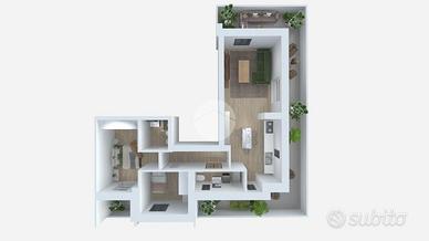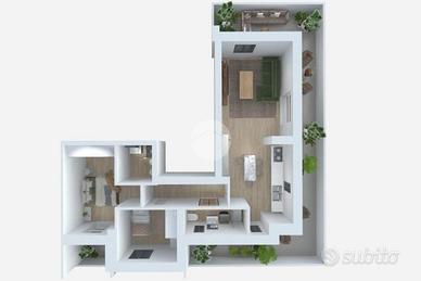 - Due bagni, di cui uno finestrato, con sanitari sospesi