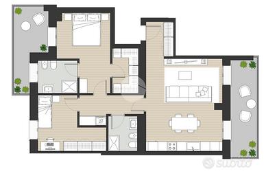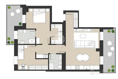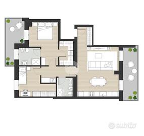 - Due camere da letto (matrimoniale + singola/studio)
