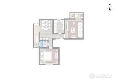 L'immobile è così composto: ingresso in disimpegno, soggiorno ampio con accesso diretto al primo balcone, cucina abitabile, sala da pranzo spaziosa con accesso al secondo balcone, camera da letto e bagno.
