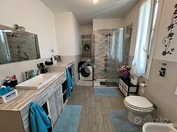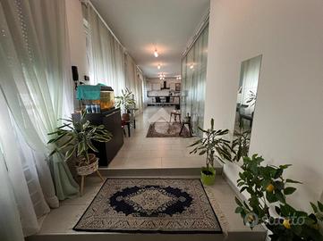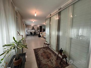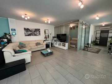 L'abitazione si apre su un ampio ingresso che accompagna alla zona giorno open space, luminosa e di grande respiro, dove la cucina a vista dialoga con l'area living e la zona pranzo, creando un ambiente perfetto per la convivialità e la vita familiare. Un angolo studio, separato da pareti mobili in vetro, garantisce uno spazio riservato e versatile, ideale per chi lavora da casa.