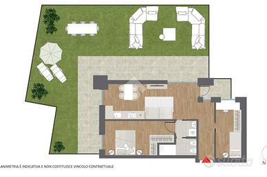 In un contesto residenziale di nuova realizzazione, sorgono due splendidi trilocali al piano terra, entrambi caratterizzati dalla presenza di un giardino privato che conferisce agli ambienti un'atmosfera di esclusività e comfort. Il primo, di 75 mq, offre un ingresso che conduce in un'accogliente zona giorno con cucina a vista e accesso diretto al giardino, perfetto per vivere momenti di relax e convivialità all'aperto. Un corridoio conduce alla zona notte composta da una camera matrimoniale, una singola e un bagno moderno e ben rifinito, con spazi ottimizzati e grande luminosità.
