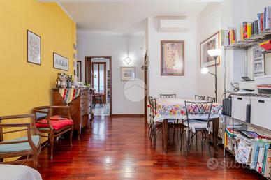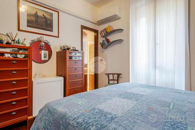 Ingresso in corridoio che permette l'accesso ai vari ambienti della casa, dove troviamo in primis, sull'esposizione destra, l'ampia zona living finestrata con affaccio tranquillo e libero sulla VIA MELORIA, procedendo con la medesima esposizione, troviamo la prima camera da letto MATRIMONIALE finestrata. Con esposizione opposta, troviamo sia la cucina abitabile dotata di porta finestra, che permette l'accesso al balcone della casa con affaccio tranquillo su corte interna, sia alla seconda e luminosa camera da letto matrimoniale con finestra e dotata di bagno en-suite finestrato con box doccia in cristallo. Infine bagno ad aspirazione forzata con box doccia e ripostiglio.