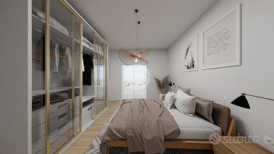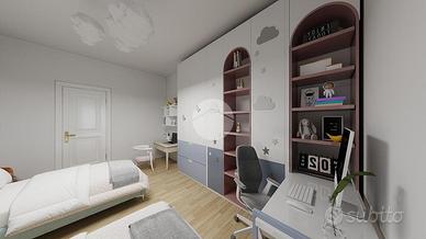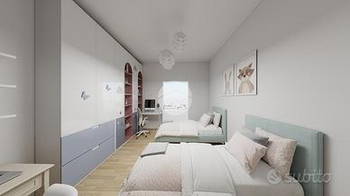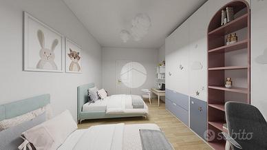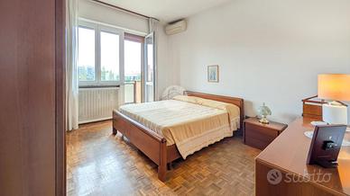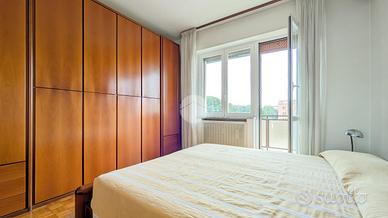 La zona notte è composta da una camera matrimoniale e da una cameretta, entrambe con pavimentazione in parquet e accesso diretto al secondo balcone, lungo e vivibile. Completa la disposizione un bagno finestrato.