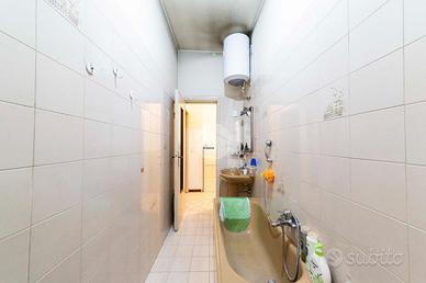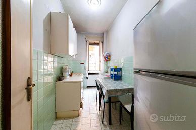 A seguire, sempre con la stessa esposizione luminosa, si trovano il bagno finestrato con box doccia e la cucina abitabile, ideale per chi ama cucinare in un ambiente spazioso e ben arieggiato.
