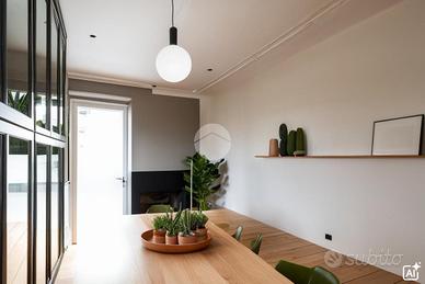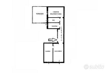 Per gli amanti delle ampie zone living, in fase di ristrutturazione si potrebbe valutare l'inversione tra cucina e bagno. Questa soluzione permetterebbe di abbattere la parete che separa i due ambienti attuali e realizzare un'ampia zona giorno con cucina a vista, in diretto collegamento con il terrazzo.