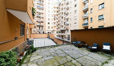 Sul lato sinistro troviamo, in fondo, una prima camera matrimoniale dotata di porta finestra con accesso diretto all'ampio terrazzo dell'immobile: uno spazio esterno riservato e vivibile, perfetto per cene all'aperto, momenti di relax.