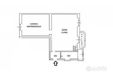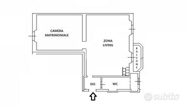 L'ingresso si apre su un disimpegno che conduce direttamente alla luminosa zona living con cucina a vista, con porta finestra che consente l'accesso al balcone, con gradevole affaccio sul cortile condominiale.