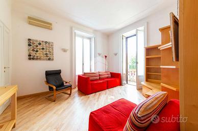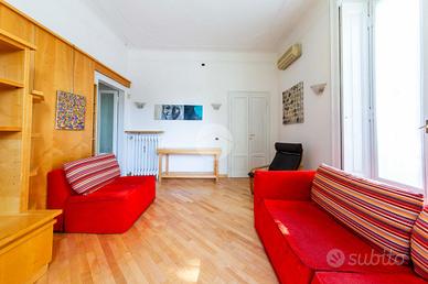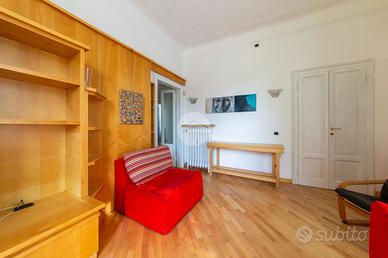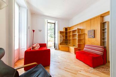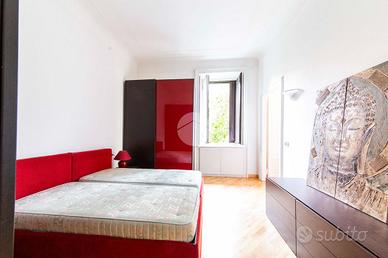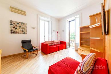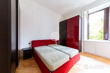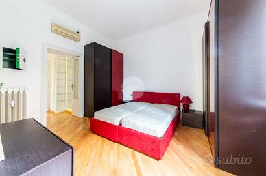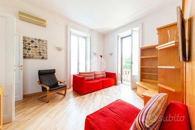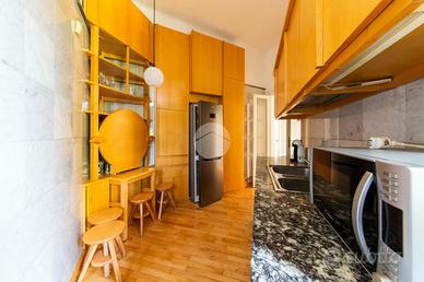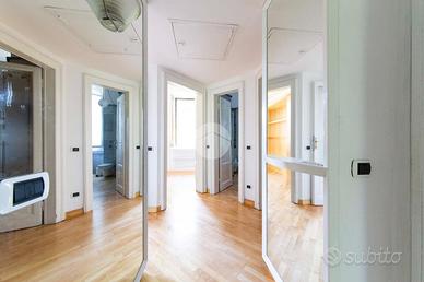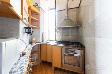 Ingresso su disimpegno che consente l'accesso ai vari ambienti della casa. Sulla sinistra troviamo innanzitutto la zona living: un ambiente ampio, luminoso e con doppia esposizione, che rappresenta il cuore della casa. Da qui si accede, tramite porta finestra, a due balconi: uno con affaccio su via Vigliani e l'altro su via Francesco Albani. Proseguendo nella stessa direzione si accede alla prima camera da letto matrimoniale, anch'essa finestrata. Sul lato opposto si trova invece la cucina abitabile, anch'essa dotata di finestra. Frontalmente rispetto all'ingresso si trovano la seconda cameretta, anch'essa finestrata, e infine il bagno finestrato, completo di vasca e box doccia in cristallo.