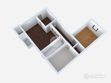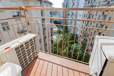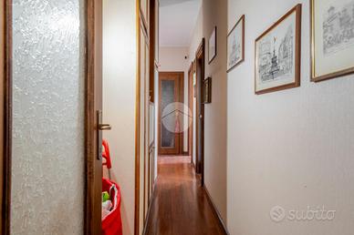 L'appartamento risulta essere così composto: Ingresso in disimpegno che si apre, subito sulla destra, nell' ampio soggiorno luminoso con cucinotto separato, con porta finestra, dalla quale accediamo al balcone della casa con piacevole affaccio su giardino condominiale. per gli amanti delle ampie zone living con cucina a vista, con dei semplici lavori ed eliminando le due pareti che li separano, si potrebbero fondere i due ambienti creando così un ingresso diretto in zona living con cucina a vista. Proseguendo, un ulteriore disimpegno ci accoglie nella zona notte, ove troviamo: la prima camera matrimoniale finestrata, con affaccio sulla via martiri triestini e la seconda camera matrimoniale, anch'essa finestrata e con esposizione opposta alla prima camera. Infine, il bagno finestrato con vasca ed un comodo ripostiglio, nel quale si potrebbe ricavare il secondo bagno .