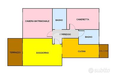 L'ingresso si apre su un luminoso soggiorno con accesso diretto a un ampio terrazzo vivibile, ideale per momenti di relax. La cucina è separata, abitabile e dispone di un comodo balcone. La zona notte è composta da una spaziosa camera matrimoniale, una seconda camera adatta come cameretta o studio, un bagno padronale finestrato con box doccia e un secondo bagno di servizio.