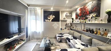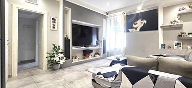 All'ingresso nell'appartamento ci accoglie subito lo spazioso soggiorno, illuminato da destra da una finestra affacciata sul Naviglio pavese. A sinistra si ha la cucina abitabile, con una finestra che guarda sulla tranquilla via Giovanola. Proseguendo dritto, sulla sinistra si trova l'ingresso all'antibagno e al bagno con finestra e doccia. Frontalmente c'è l'ingresso al disimpegno della zona notte. Dentro di esso, a destra e sinistra ci sono le due camere da letto matrimoniali. La camera a sinistra affaccia sulla via Giovanola, la camera a destra affaccia sul Naviglio. Frontale, nel disimpegno, si trova l'accesso a uno spazioso ripostiglio.