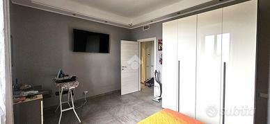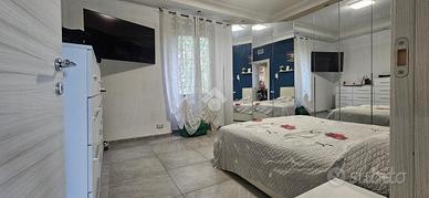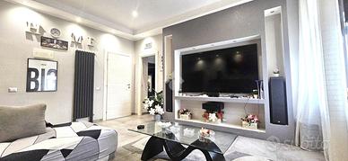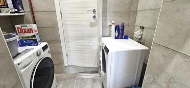 Le finiture includono la porta di ingresso blindata, porte interne rifatte, impianto elettrico e idraulico rifatti, pavimenti in ceramica, infissi esterni in alluminio con doppi vetri e zanzariere. C'è aria condizionata canalizzata in tutta la casa.