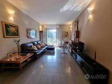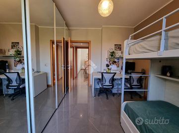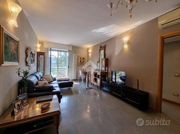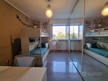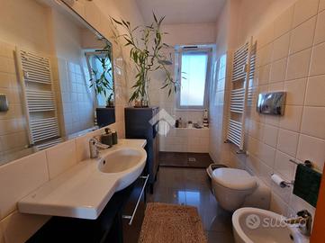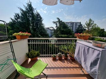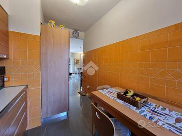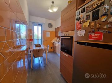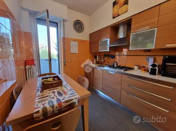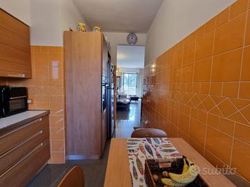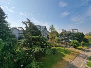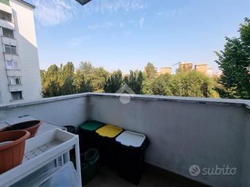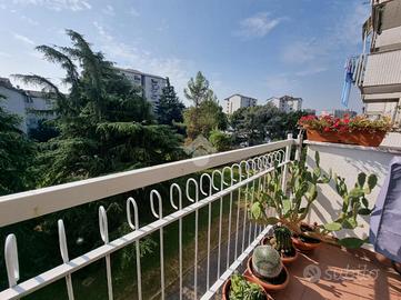 In palazzina di sei piani, immobile sito al terzo raggiungibile con ascensore. Dall'ingresso ci accoglie subito la zona giorno, sulla sinistra, soggiorno con accesso ad un balcone di buona metratura e sulla destra la cucina abitabile con un secondo balcone, bagno finestrato con doccia e antibagno. La zona notte è invece suddivisa in due camere da letto (in una delle quali verrà realizzata una cabina armadio) e bagno cieco con wc sanitrit e doccia. Ripostiglio in quota. L'appartamento è stato interamente ristrutturato nel 2006 e mantenuto in ottimo stato con aria condizionata nella zona giorno e videocitofono. La doppia esposizione e il piano medio rendono gli ambienti luminosi e con un buon riscontro d'aria. A completare il tutto box al piano interrato. L'edificio è immerso nel verde e sono presenti molti servizi, tra cui scuole, primarie e secondarie, supermercati e centri commerciali. In particolare, è ben servito dai mezzi pubblici come la fermata della metropolitana Bisceglie (linea M1), l'autobus; 58, 76, 78, 63 nonchè altri mezzi per fuori Milano con fermata sotto le pensiline della MM.
