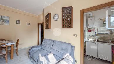 L'ingresso si apre su un accogliente disimpegno che conduce al soggiorno, arricchito da un cucinotto finestrato e da un balcone ideale per godersi momenti di relax all'aperto.