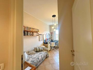 La doppia esposizione sud-est/nord-ovest e l'altezza del piano garantiscono una straordinaria luminosità durante tutta la giornata, oltre a un'ottima ventilazione naturale. L'immobile è dotato di doppi vetri, zanzariere su tutte le finestre e aria condizionata in soggiorno e nella camera matrimoniale, per garantire il massimo comfort in ogni stagione.