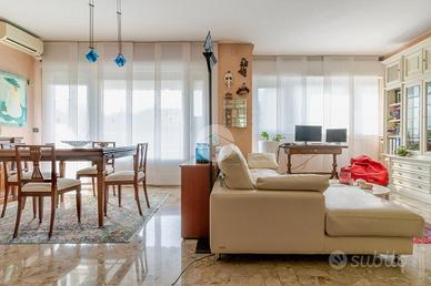 VIA PERGINE : Nel cuore del quartiere QT8 - Portello, Adiacente al Viale Alcide de Gasperi ed al 'Parco Industria Alfa Romeo Portello', quindi a pochi metri (250m) dalla fermata della metropolitana M1 'QT8' oltre che dalle fermate dei vari mezzi di superficie come tram e autobus (14/68/69/91/90), che in meno di 15 minuti collegano al centro della città, proponiamo in contesto degli anni '60, ottimamente tenuto nelle parti comuni e con cortile condominiale ove è possibile parcheggiare bici per i condomini, un TRILOCALE CON TRIPLA ESPOSIZIONE E TERRAZZO, posto al QUINTO PIANO, in stabile dotato di servizio di portineria Full Time e DOPPIO ascensore.