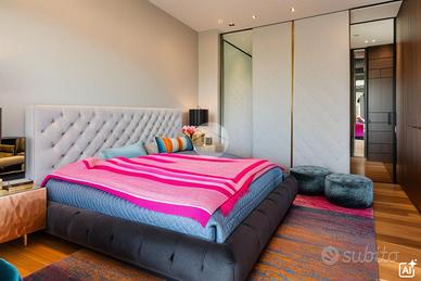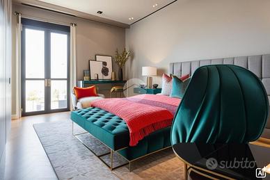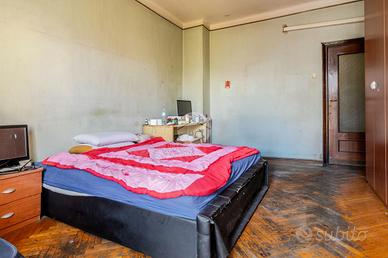 La camera da letto principale gode di un accesso diretto al balcone, anch'esso con affaccio sulla corte interna, offrendo uno spazio riservato e silenzioso.