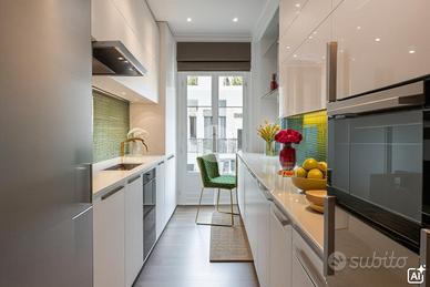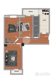 L'appartamento risulta esser così composto: ingresso in disimpegno , che permette l'accesso ai vari ambienti della casa , ove in primis troviamo: Sull'esposizione destra , la cucina semi abitabile, con affaccio sul cortile interno, ideale per garantire tranquillità e silenzio.