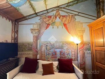 Comoda zona living con cucina, con travi in legno a vista e spazi ben distribuiti, due camere da letto, di cui una impreziosita da affreschi originali dei maestri di Brera degli anni '80, autentico elemento di pregio e un bagno finestrato elegante e funzionale.