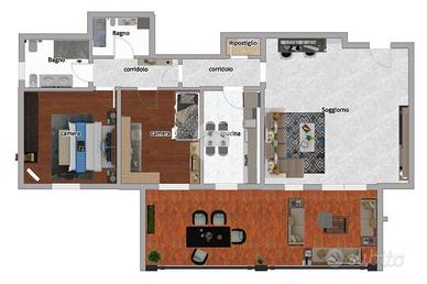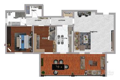 TERRAZZE: A pochi passi dal Parco del Ticinello, autentica oasi di tranquillità, vi presentiamo un trilocale al sesto piano che conquista subito per luminosità e potenziale. Grazie alla possibilità di ricavare una terza camera, portando la cucina a vista nel soggiorno, l'appartamento si presta a diventare uno spazio moderno e perfettamente personalizzabile. UBICAZIONE: Inserito in un quartiere elegante e armonioso, caratterizzato da architetture moderne e ampie logge affacciate su giardini curati, l'immobile gode di un contesto esclusivo che unisce natura, comfort e servizi. Il Parco del Ticinello,è un luogo ideale per chi desidera vivere in un ambiente rilassante, senza rinunciare alla comodità dei collegamenti urbani.La zona è perfettamente servita: tram a pochi passi collegano rapidamente alla MM2 Piazza Abbiategrasso, mentre nelle vicinanze si trovano supermercati,negozi e centri commerciali. Ottima anche la viabilità grazie alla Tangenziale Ovest (uscita 7bis Rozzano) e all'autostrada A7 Milano-Genova. STABILE: Il complesso residenziale, edificato negli anni '90, presenta linee sobrie e signorili, facciata a intonaco e quattro scale servite da ascensore. Un servizio di portineria diurna garantisce ordine e sicurezza, contribuendo a creare un ambiente sereno e curato. COMPOSIZIONE: L'appartamento si distingue per la razionalità degli spazi e l'ottima distribuzione interna.L'ingresso si apre su una luminosa zona living di 36 mq con pavimenti in marmo e doppio punto luce,che valorizza la continuità con il terrazzo di 27 mq loggiato, ideale per colazioni all'aperto, momenti di relax o serate conviviali. Un disimpegno conduce alla cucina abitabile, funzionale e accogliente, e al ripostiglio.La zona notte comprende due camere da letto - una con accesso diretto al terrazzo - un bagno padronale con doccia e un secondo bagno di servizio. FINITURE: L'abitazione presenta porta blindata, marmo nella zona giorno, parquet nelle camere e ceramica in cucina e bagni.