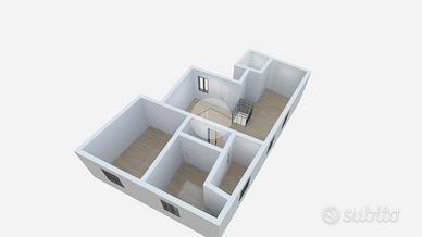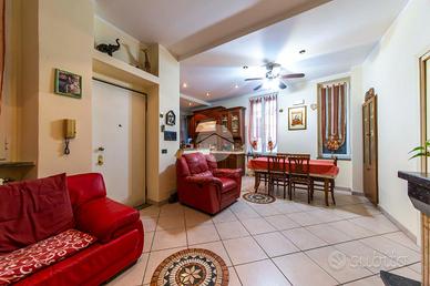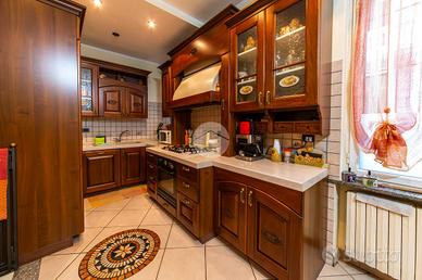 Ingresso diretto in ampia zona soggiorno, finestrata e con medesimo affaccio dell'ingresso, e dotata di camino, comunicante con la cucina a vista, a sua volta doppiamente finestrata e con affaccio tranquillo sulla Via Terni. Proseguendo attraverso una comoda porta scorrevole, accediamo poi alla zona notte, composta da un disimpegno, due camere da letto entrambe finestrate e con medesimo affaccio sulla Via Francesco Rismondo, ed un bagno anch'esso finestrato e dotato di vasca.