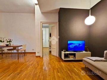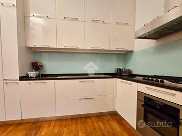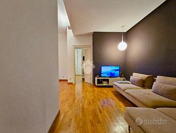L'appartamento si presenta in buone condizioni, con infissi in PVC/Doppio vetro, porte in legno, pavimentazione in parquet su tutta la superficie ad eccezione del bagno dove abbiamo il gres porcellanato, riscaldamento centralizzato con radiatore e termovalvole e aria condizionata canalizzata in ogni ambiente.