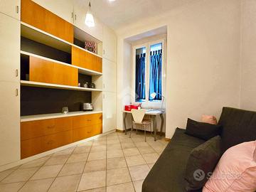 In stabile d'Epoca del 1930 proponiamo in vendita ampio Trilocale di c.a. 95 mq., al 1° Piano senza ascensore, così composto: Ingresso, Ampio Soggiorno con Cucina a Vista, Ampia Camera Matrimoniale, Cameretta, Bagno finestrato con vasca, doccia e angolo lavanderia e ripostiglio. Completa la proprietà la cantina di pertinenza.