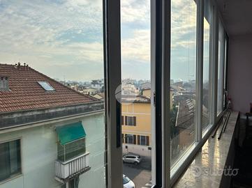 Ingresso in disimpegno, dal quale possiamo accedere ai vari ambienti della casa e dove troviamo, subito di fronte il soggiorno dotato di portafinestra che conduce sul comodo balcone verandato ad oggi adibito a zona cucina, con affaccio libero sulla Via Scanini.