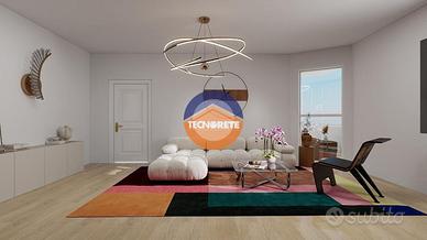 Sulla sinistra si trova la cucina separata, con accesso diretto al primo balcone; a seguire il soggiorno, anch'esso con uscita sul balcone, e il bagno finestrato.