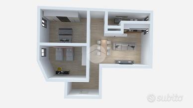 L'appartamento risulta essere così disposto: l'ingresso si apre su una luminosa e accogliente zona living, impreziosita dalla cucina semi a vista, uno spazio pensato per vivere e condividere momenti di convivialità. Dal soggiorno si accede al balcone con gradevole affaccio sul cortile condominiale, che garantisce tranquillità e riservatezza.