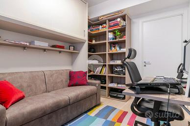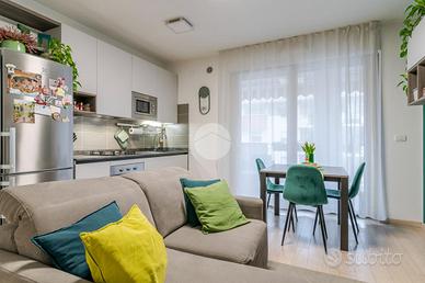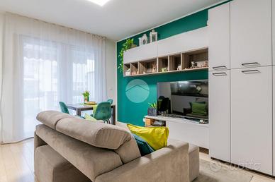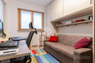 L'appartamento è così composto: soggiorno con accesso al terrazzo e cucina a vista, disimpegno, spaziosa camera da letto matrimoniale, cameretta e due bagni di cui uno finestrato.