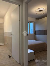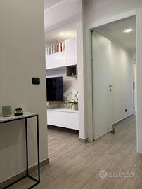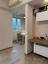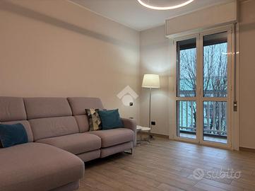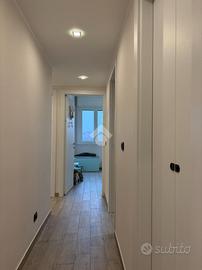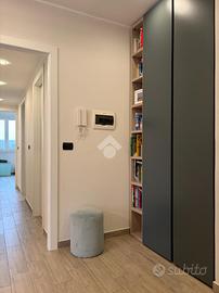MM San Leonardo: ci troviamo nel quartiere Gallaratese, a poche decine di metri di distanza dalla fermata della metropolitana di San Leonardo, che permette di raggiungere comodamente e con rapidità i maggiori punti di interesse della città. Il quartiere è famoso per la tranquillità, l'abbondanza di aree verdi, tra cui spiccano il Parco di Trenno ed il Bosco in Città e le scuole primarie e secondarie, raggiungibili in pochi minuti a piedi. L'appartamento è sito in uno stabile civile dotato di due ascensori e un montacarichi a servizio dei piani residenziali; la presenza di una rampa d'accesso permette di abbattere completamente le barriere architettoniche. L'alloggio dispone di una metratura generosa e razionalmente distribuita. Ci accoglie il disimpegno d'ingresso che, unitamente al corridoio, funge da filtro per le zone giorno e notte; la prima è composta da un soggiorno con balcone e dall'ampia cucina abitabile; la seconda, ben disimpegnata, ospita due camere da letto di buone dimensioni che, con i loro affacci sul giardino condominiale, garantiscono tranquillità e privacy; il bagno finestrato con ampio box doccia in cristallo e la presenza di due comodi ripostigli, uno dei quali utilizzato come cabina armadio, completano le dotazioni. La doppia esposizione e il piano alto garantiscono luminosità e un buon ricircolo d'aria a tutti gli ambienti. L'immobile, recentemente ristrutturato con gusto, presenta impianti moderni e finiture attuali, tra cui spiccano gli infissi in pvc e doppio vetro, muniti di zanzariere, l'impianto di climatizzazione, la pavimentazione uniforme in gres porcellanato effetto legno che corre uniforme in tutta la casa creando continuità tra gli ambienti, l'utilizzo del cartongesso per creare giochi di volume e infine la presenza di videocitofono e porta blindata. Completano la proprietà la cantina al piano interrato e la possibilità di parcheggio in una apposita area riservata ai condomini. Per appuntamenti i nostri incaricati sono dispon