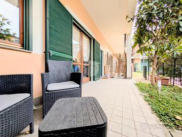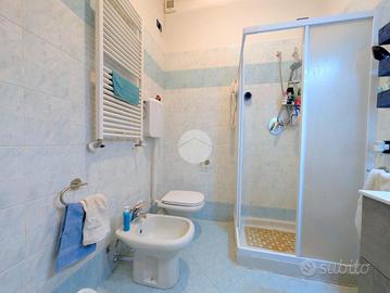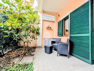Via Lisiade Pedroni - Appartamento su due livelli composto da ingresso indipendente da giardino privato, soggiorno con angolo cottura, antibagno e bagno con doccia; al piano superiore disimpegno, camera matrimoniale, cameretta, terrazzo e bagno con doccia. Presente posto auto adiacente al giardino.