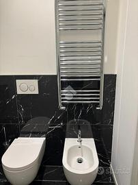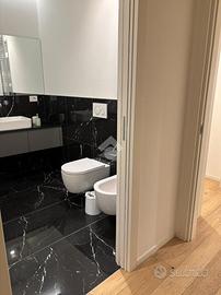 I bagni ampi in marmo dotati di box doccia, sanitari sospesi di ultima generazione e doppio lavabo.