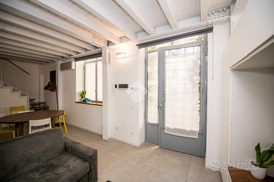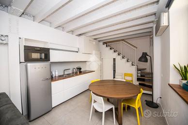 In una delle zone più suggestive di Milano, a pochi passi dalla Darsena e nelle immediate vicinanze di Piazza XIV Maggio, proponiamo in vendita un trilocale disposto su due livelli, situato al piano terra e primo ed ultimo piano di uno stabile d'epoca con ingresso indipendente.