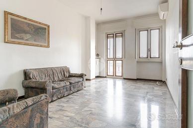 L'ingresso conduce in un disimpegno che distribuisce in modo ordinato i vari ambienti. La zona giorno è composta da un ampio living con accesso diretto al balcone vivibile con affaccio su Via delle Forze Armate. Adiacente si trova la cucina abitabile, anch'essa collegata allo spazio esterno. La zona notte ospita una spaziosa camera matrimoniale, luminosa e con uscita sul balcone. Completa la proprietà il bagno finestrato e un comodo ripostiglio.