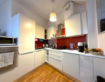 L'appartamento, in buono stato interno e completamente arredato, è composto da ampia zona living con cucina a vista, due camere da letto matrimoniali, bagno finestrato con doccia e ripostiglio/lavanderia.