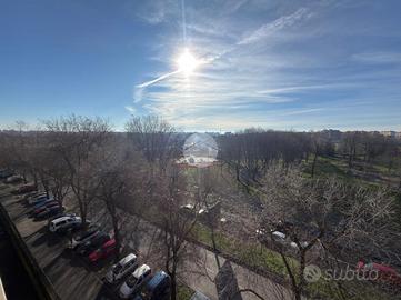L'ingresso, in un comodo disimpegno, conduce ad un ampio e luminoso soggiorno con balcone, che espone sul verde del Parco Alessandrini, offrendo una piacevole vista aperta e una gradevole esposizione che valorizza la luce naturale. La cucina è separata ed è servita da un secondo balcone.